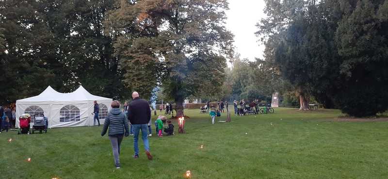 Da es nun so langsam dämmerte, war der Zeitpunkt gekommen, die Fackeln anzuzünden und uns auf den Rückweg zu machen. Es war ein schöner Anblick, die Kinder mit den Fackeln durch den Wald marschieren
