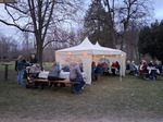 Zelten kamen die Menschen zusammen, um zu plaudern, zu lachen und die Speißen und Getränke der Vereine zu genießen.